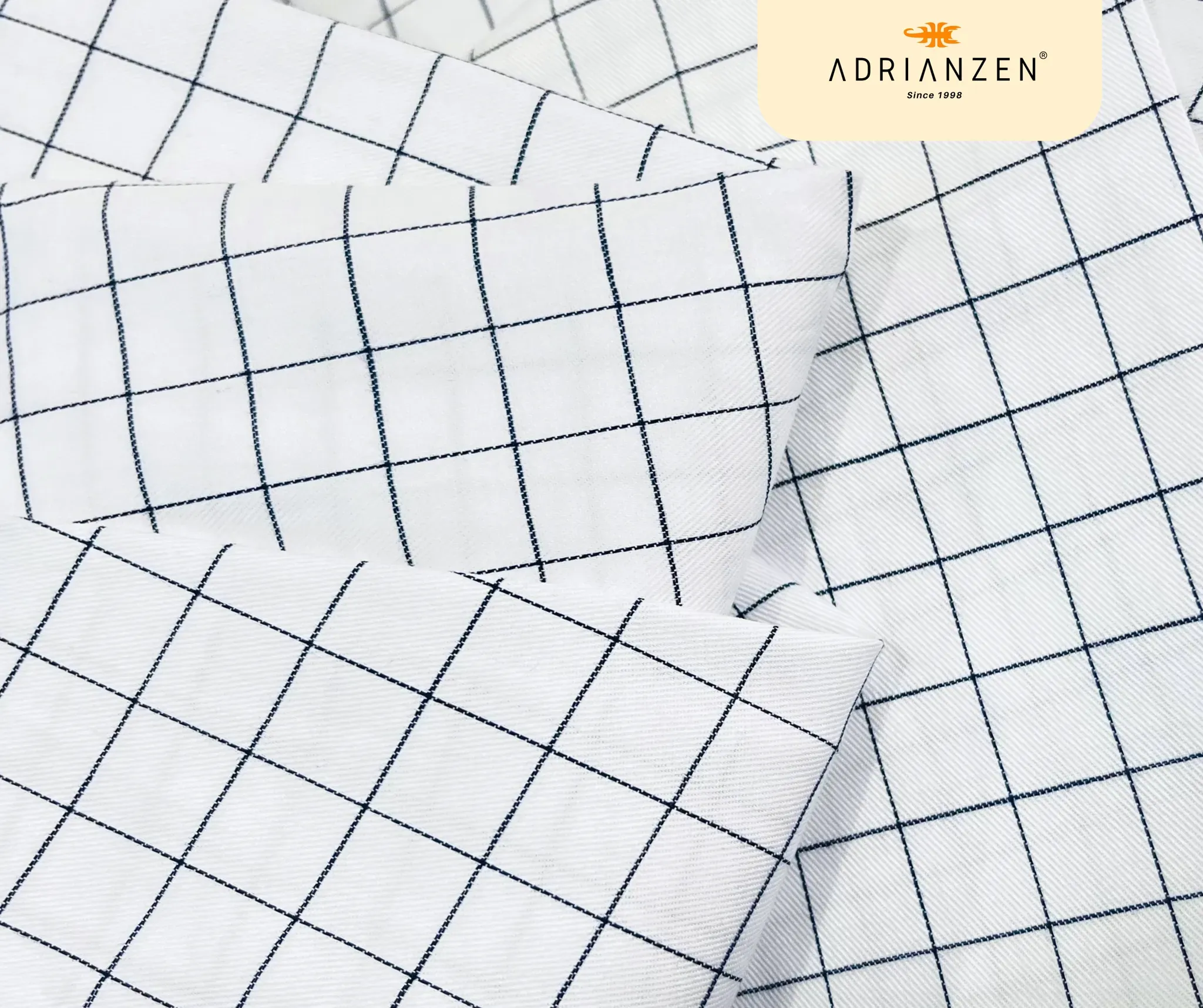 Tejido de algodón liviano; color blanco a cuadros ; suave y transpirable.