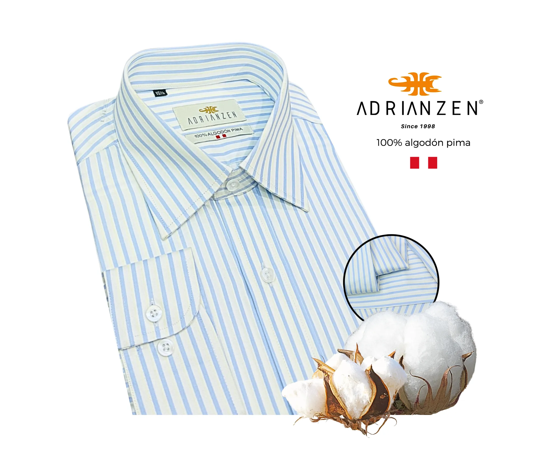 100% algodón pima de calidad premium, mercerizado para un acabado más suave y brillante.