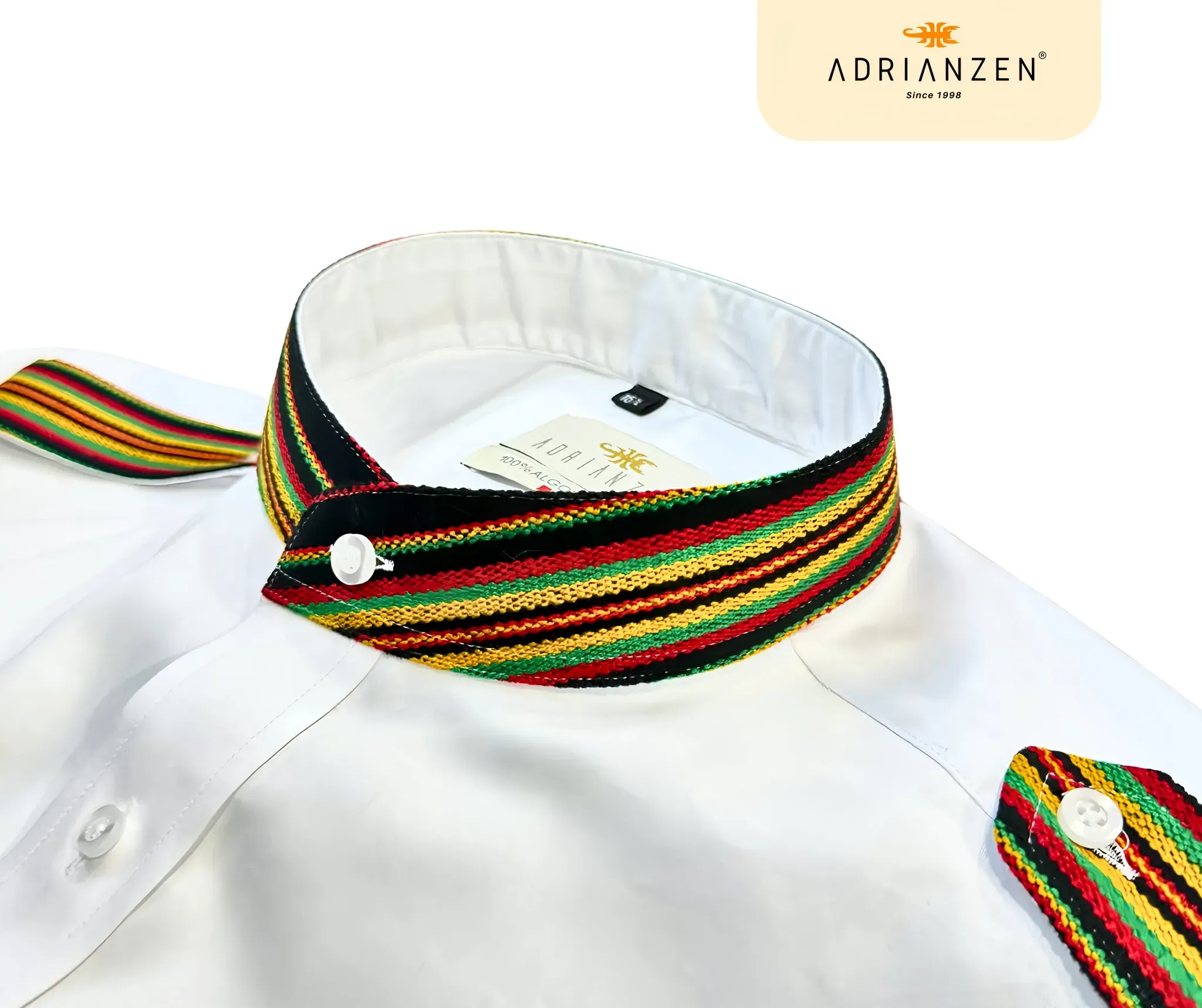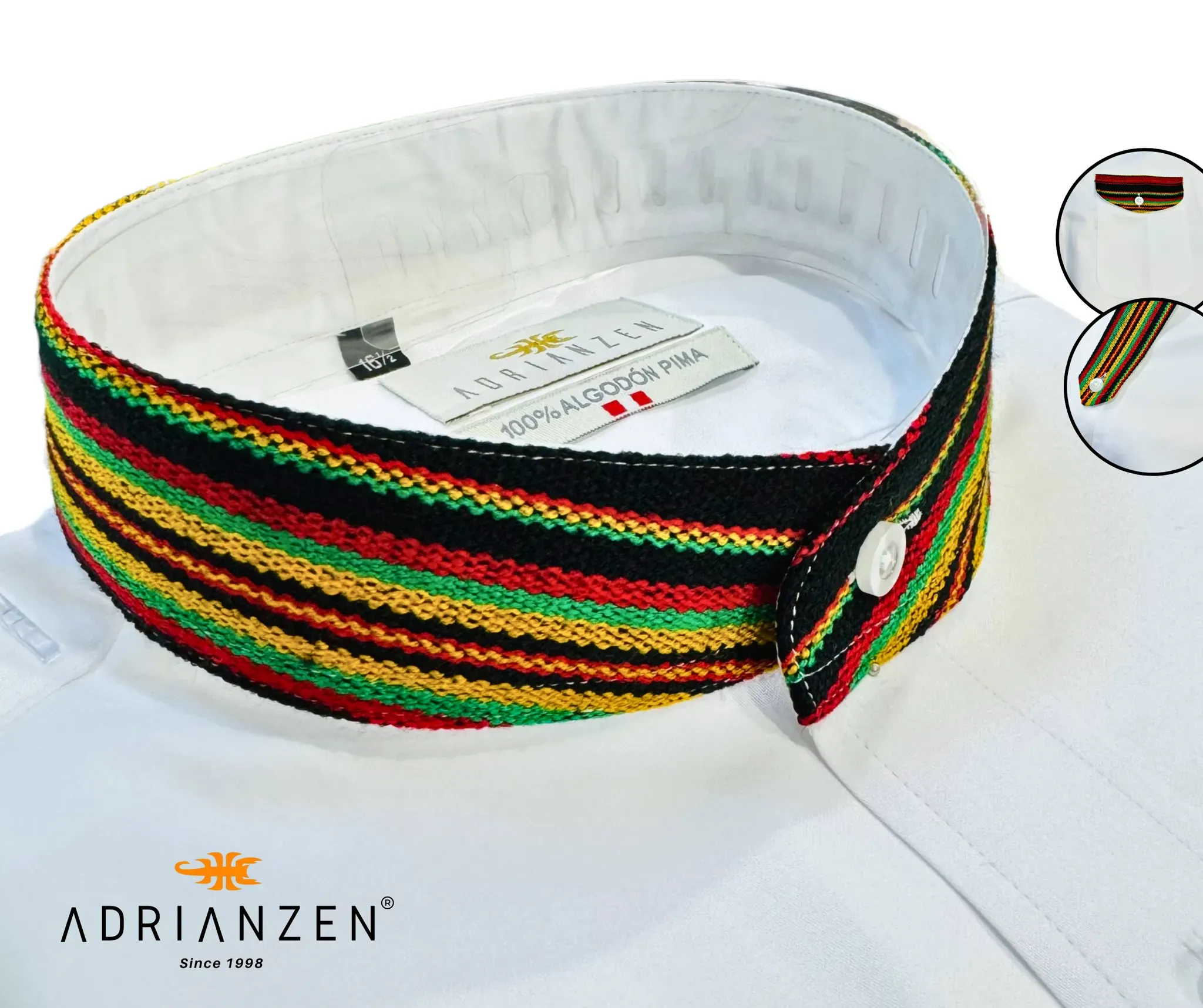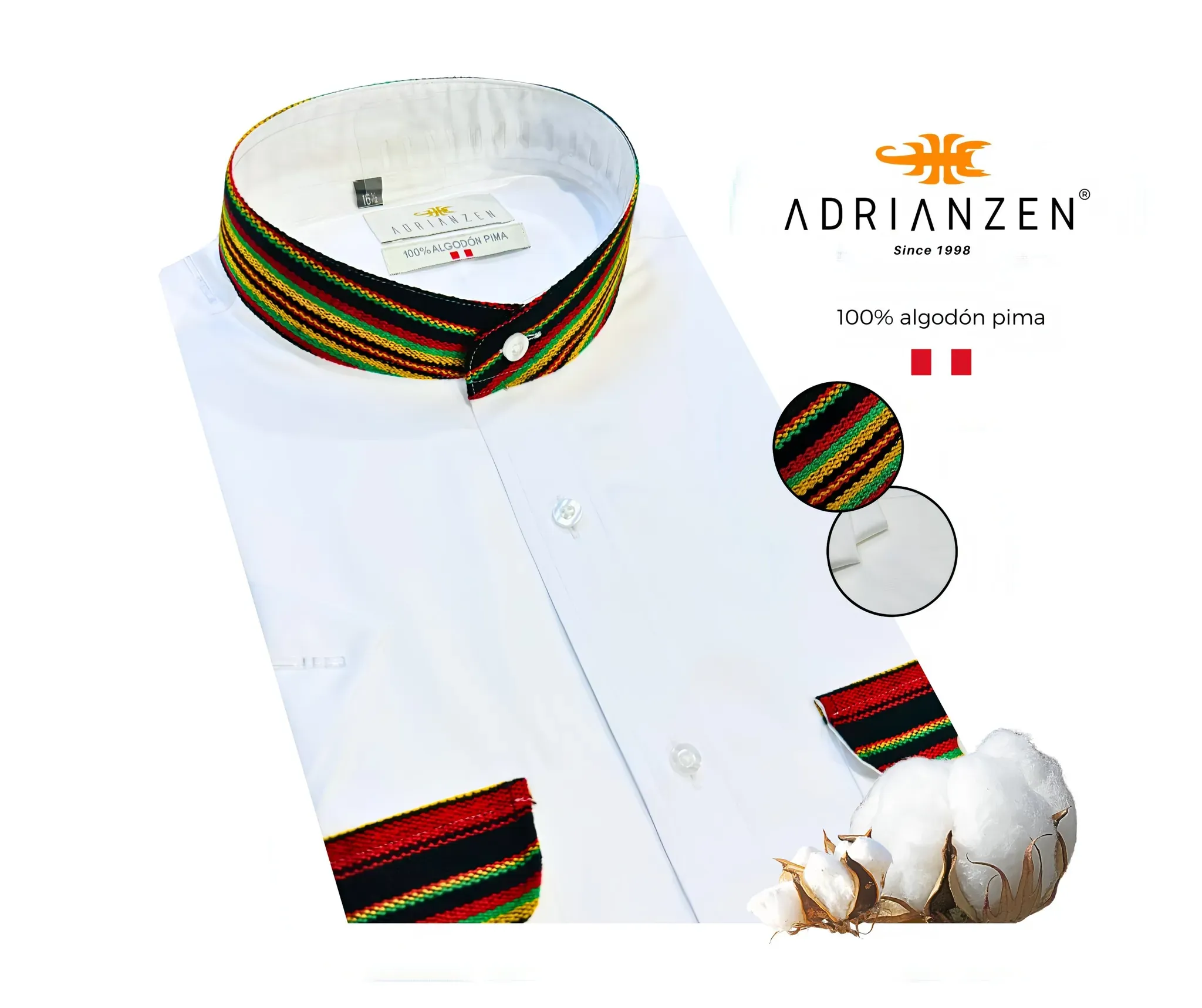 Nuestra camisa de algodón pima 100% te ofrece un estilo único con detalles de aguayo en colores vibrantes que representan la rica cultura andina.