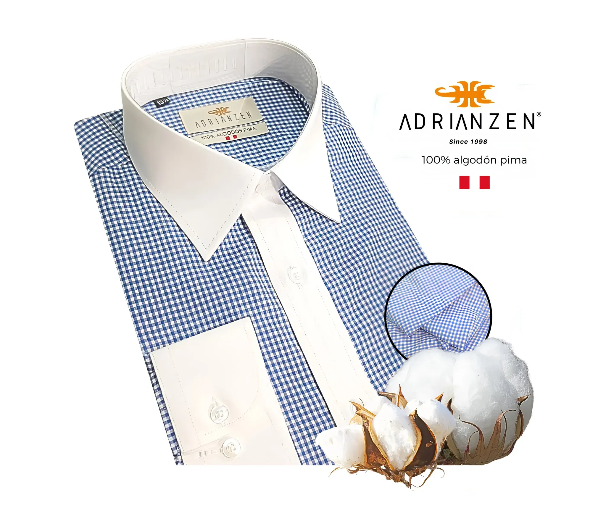 TELA: 100% algodón pima. Hecho de tela de alta calidad, material muy suave y cómodo. Tejido de algodón liviano; Color fondo azul micro cuadros y contraste blanco; Suave y transpirable; Tejido de buena calidad. (El color puede ser un poco diferente debido al monitor).