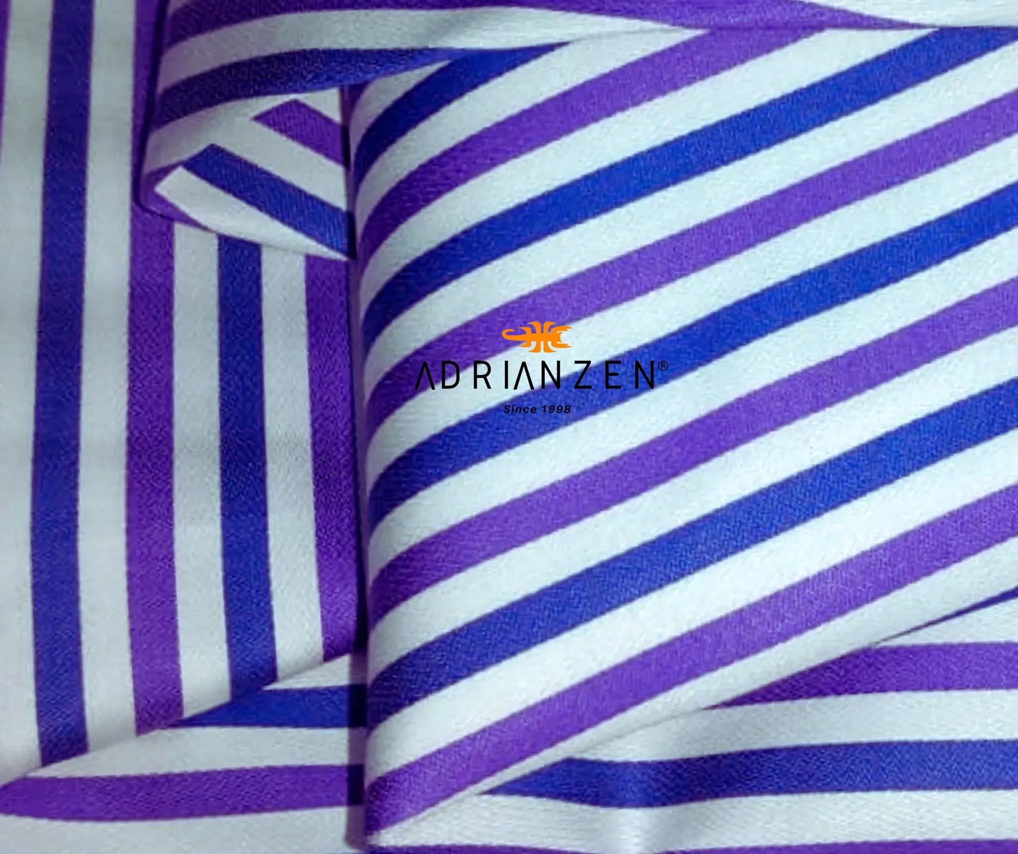 Tejido de algodón liviano; color líneas azul, morado con fondo blanco ; suave y transpirable.